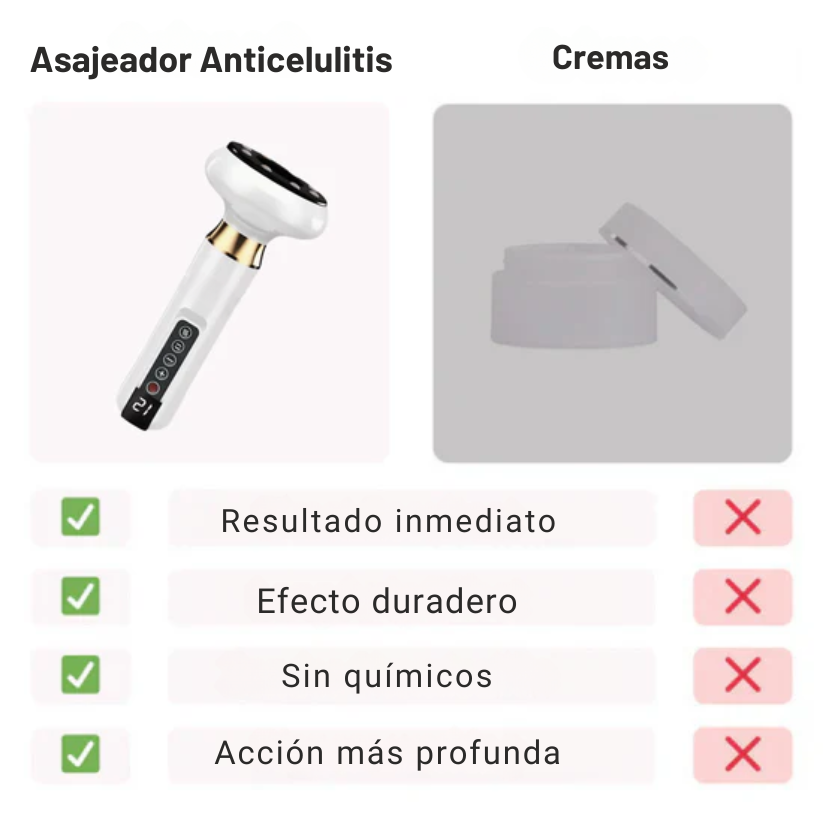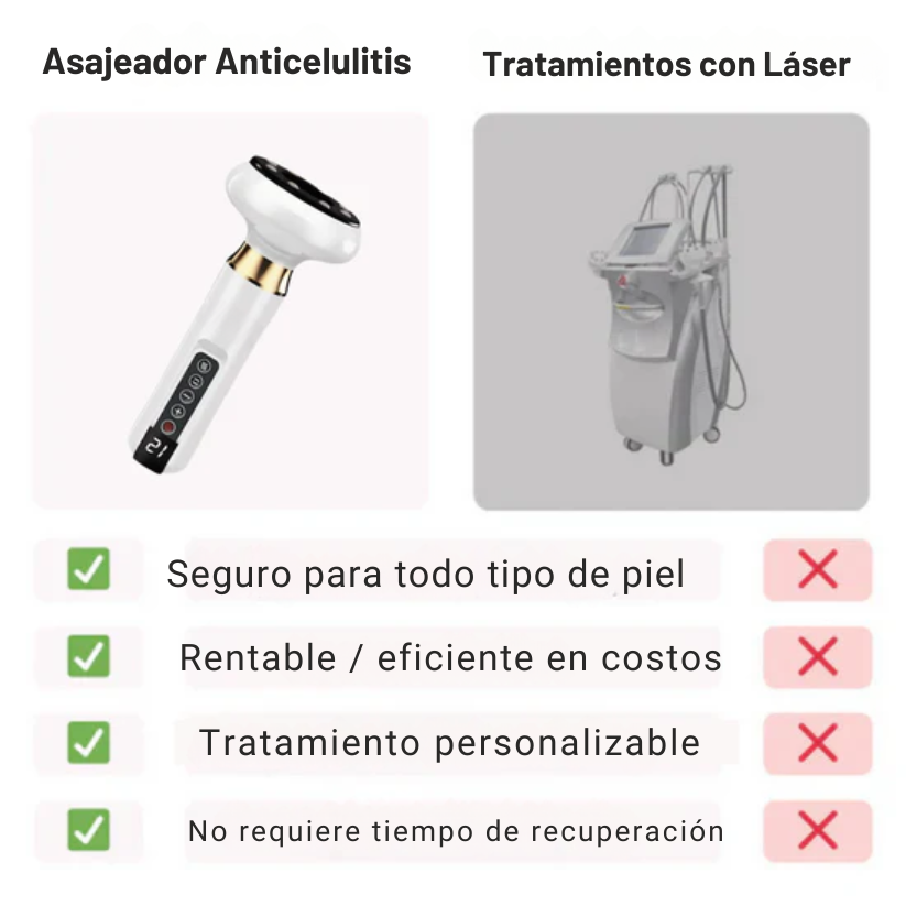 Totalmente. El masajeador usa succión suave, vibraciones y calor. No es invasivo ni doloroso y es seguro para cualquier tipo de piel. Está diseñado para uso en casa con comodidad y seguridad.